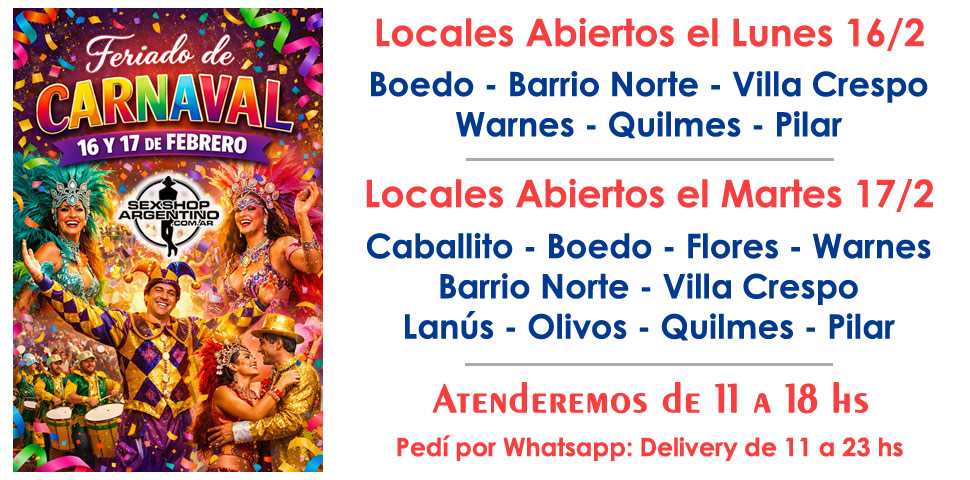 SOMOS EL UNICO SEXSHOP ABIERTO FERIADOS!! ATENDEMOS TODOS LOS DIAS DEL AÑO!