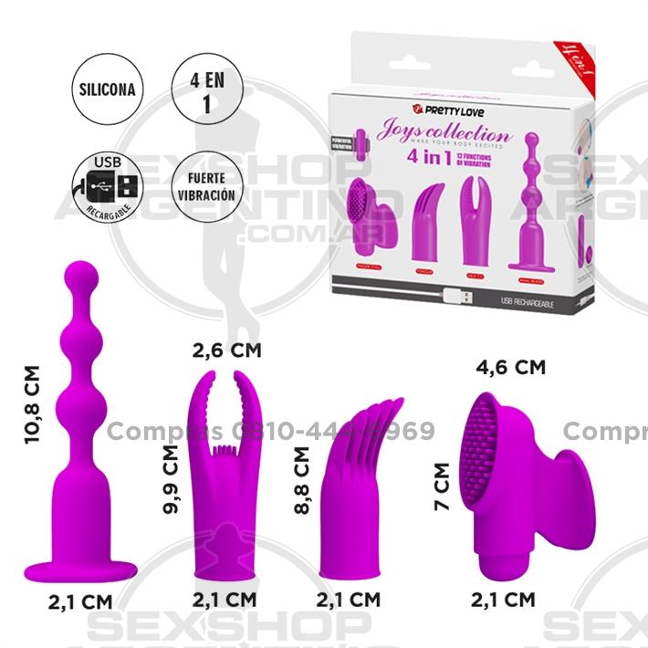 Kit de 4 vibradores: micrófono, bala, punto G y Pezoneras, multiplique la diversión con la colección de juguetes que son perfectos para sesiones en solitario y juegos en pareja. Kit para sorprender a tu pareja y disfrutar de una divertida noche de juego para ambos. Contiene clips para pezones que vibran a través de sus pezones, varita de múltiples velocidades y potente junto con una tapa de silicona para agregar más diversión durante el juego, un vibrador de conejo para darle vibraciones que inducen el clímax a usted o incluso a su pareja. Por último, el mini huevo que se basa en una batería te brindará un placer oculto. Pedilo en pagìna o visita nuestros locales de Sexshop Argentino.