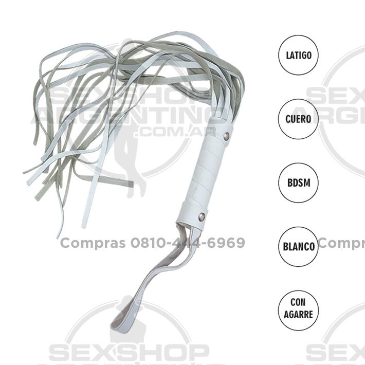 Látigo corto de cuero en color blanco con remaches metálicos y peluche rojo. Puede acariciar con el costado de peluche o usar el costado de cuero para castigar. La excelente mano de obra y la combinación de cuero y peluche rojo crean un producto único y emocionalmente único. Solo puedes encontrar este látigo en Sexshop Argentino.