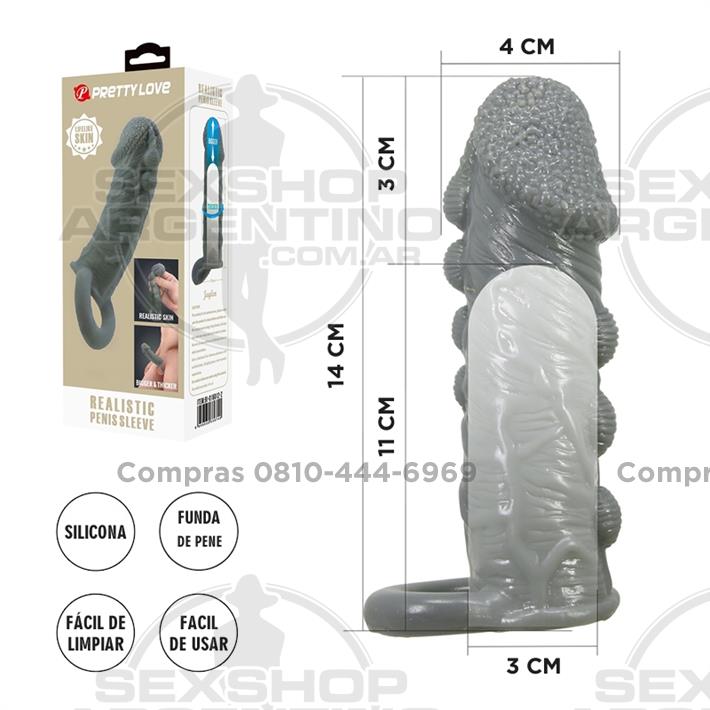 Con está funda para pene conseguiras darle a tu pene 5 cm de extensión. Su cuerpo texturado brinda una placentera estimulación vaginal. Diseño transparente, fabricado en suave material hipoalergénico y flexible. Tiene un tamaño de 14 cm de largo y un grosor de 3.9 cm. No lo pienses más! Logra la confianza que estabas buscando con la funda para pene transparente disponible en todos nuestros SexShop.