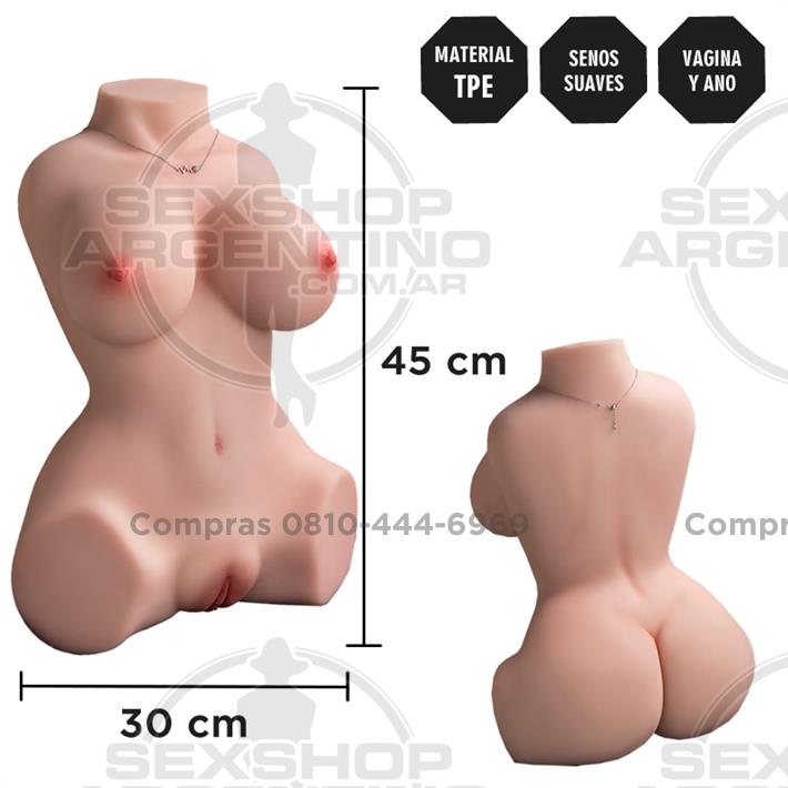Espectacular torso con las piernas encojidas. Pesa 10,8 kilos. Mide42cm de largo x 31 cm de ancho x 21cm de alto. Fabricada en espactacular y muy cuidado material ciberskin con detalles de vagina pintados a mano. NO ES INFLABLE, es macisa y no se pincha. Apta para sexo vaginal y Anal. Incluye 2 vibradores con regulación de velocidad. Audio con sonido de gemidos que puede ser encendido o no. Producto de alta calidad exclusivo en Argentina. Importado por Sexshop Argentino exclusivamente para sus 15 locales. Reservala que se agota!!!