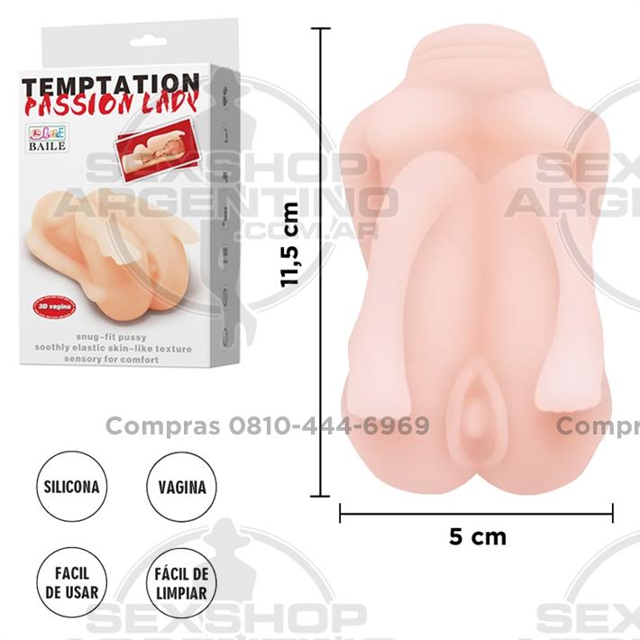 Torso inferior de mujer fabricado en ciberskin. Material super realistico que toma temperatura, pesa 11,8 kilos y mide 80cm de largo x 25cm de ancho x 17,5cm de alto. Es el estimulador mas real que existe en el mercado Argentino. Con doble motor de vibración con regulación de intensidad que funciona con 3 pilas AAA. Con sonido de gemidos que puede ser encendido o no. NO ES INFLABLE, es macizo en material ciberskin. Cola infartente con piernas de modelo que nunca te van a decir que no!! Producto importado y vendido por Sexshop Argentino.