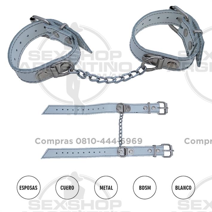 Solo en SEXSHOP ARGENTINO podrás encontrar estas esposas Blancas de cuero con tachas y detalles de metal, ideales para someter a tu pareja. controla los deseos y la estimulación de tu pareja con los mejores accesorios para sumisión. nueva linea de cueros blanca. Esposas premium finas con cadena Blancas, con una calidad y costuras de primer nivel. Producto exclusivo de SEXSHOP ARGENTINO