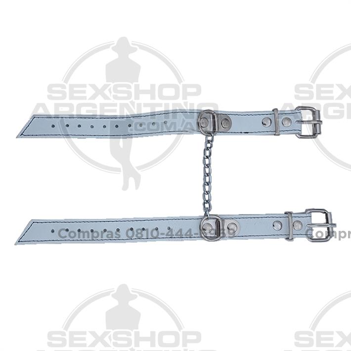 Cueros eróticos, Esposas de cuero - Esposas Premium Finas Con Cadena En Blancas